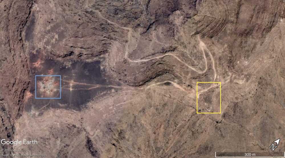 The retreat of the Saudi National Guard towards the Alfare valley did not happen without casualties. The Houthi-made report shows from 23:55 to 27:07 5 destroyed LAVs. 2, possibly 3, of these LAVs are still visible on satellite imagery from 30 May 2020 and were not present on imagery from 21 July 2019. Also the details of the surroundings visible on the video matches with the satellite pictures.