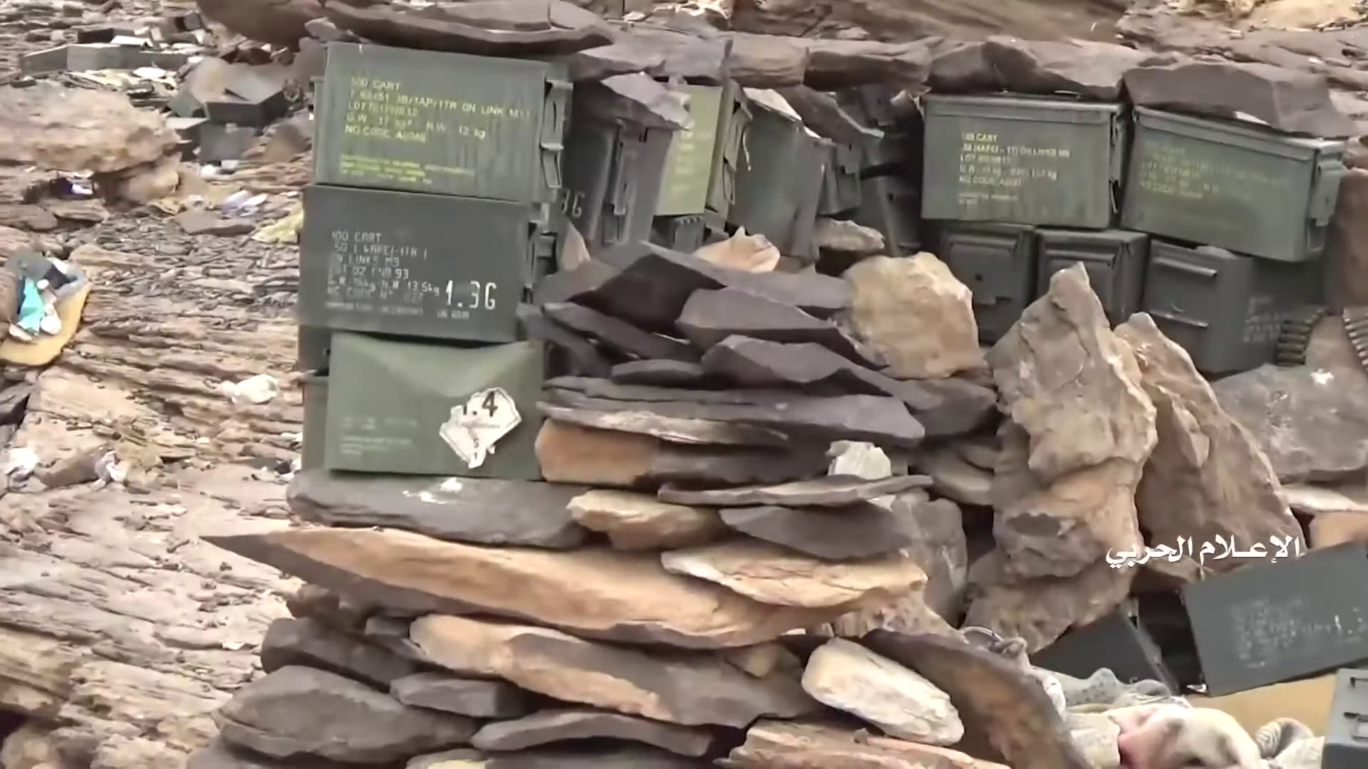 After this the fighting moves east. The video shows mostly the battle on a large plateau and the destruction of outposts on and nearby this plateau. The Saudi vehicles on the plateau, LAVs and others, are first attacked with anti-tank missiles (20:54-22:42). Later the outpost is taken by Houthi fighters after a fierce exchange of gunfire (22:43-28:44). The remnants of the outpost and positions on the plateau show a wide range of Belgian weapons and ammunition.